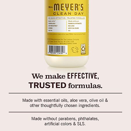 - TESTED & TRUSTED: Mrs. Meyer's products are made with essential oils, aloe vera extract, olive oil, and other thoughtfully chosen ingredients that are cruelty-free and Leaping Bunny Certified
