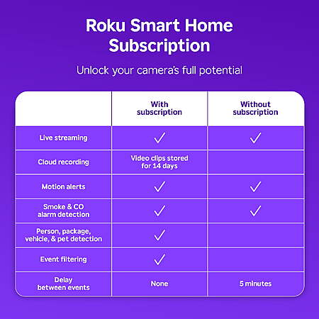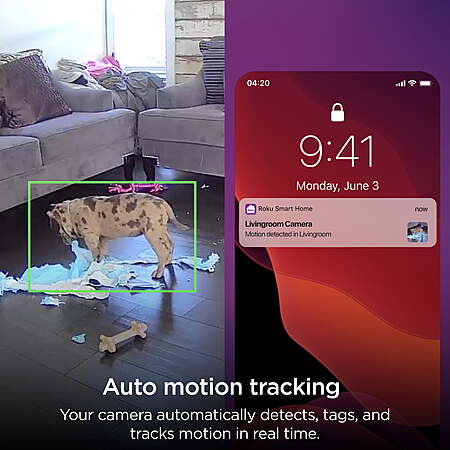 | Product Description: | Life isn’t stationary. Neither is Roku Indoor Camera 360° SE. Full 360° horizontal and 93° vertical panning detects and tracks motion all the way around your room. Supervise playtime, keep tabs on your pet, and watch any corner of your home while you’re away—right on your Roku Smart Home mobile app or Roku TV™ or Player. Up late? Roku Indoor Camera 360°SE streams high-detail, full color night vision, so you’ll know for sure that coat hanging on the door is not, in fact, the boogeyman. Clear, two-way audio lets you communicate instantly with anyone in your house—be they friend or foe. If it’s the latter, an 80db siren (pretty loud) scares away intruders and lets them know: you’re always watching. High-definition video: See an entire area with 1080p HD picture in full color—even at night—right in the Roku Smart Home mobile app. Auto motion tracking: Your camera automatically detects, tags, and tracks motion in real time, so you can focus on what’s important Smart motion and sound detection: Get an alert within seconds of your camera detecting motion or sound. Smart sensors detect body heat, so you don’t get false alerts for curtains blowing in the wind. See it all on your TV: No, no—don’t get up. Pull up your camera’s feed on your Roku TV™ or Player by simply pressing a button on your remote or using Roku Voice. Control from anywhere: View a live stream, adjust the motion detection zones, talk to your pet, and more—all from the Roku Smart Home mobile app. Color night vision: No more shadowy figures. See dark areas in 1080p full color with a low-light amplifier that captures twice as much light. Two-way audio: Say a quick “what’s up” to family members coming and going or have a full conversation with seamless two-way audio. Smoke & CO alarm notifications: Get an alert the moment your camera hears an alarm in your home. Built-in siren: Scare off unwanted visitors (or your cat away from that plant) with an 80db siren. Roku Smart Home subscription: Make your home even smarter. View 14 days of cloud recordings and smart detection for people, packages, pets, and cars, so you receive only the notifications that matter to you. Roku 360° Camera SE is intended for home monitoring only. Check your state laws regarding placement of security cameras in public spaces. 2.4GHz Wi-Fi® required. |