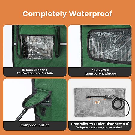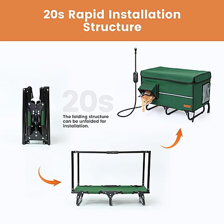 Model: 26'' XL Collapsible Heated Cat House - Metal Frame, 100% Insulated Waterproof Outdoor Stray Cat Shelter with Heating Pad & Escape Door, Adjustable Heat & Timer, Warm Shelter for Cats, Green