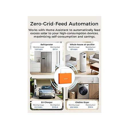 • LOCAL DATA, FULL PRIVACY, NO SUBSCRIPTIONS: Connect seamlessly with Home Assistant for advanced energy automation. All energy data stays local—no cloud, no delays, no privacy concerns. Take full control of your home energy, reduce waste, and protect your privacy. Supports Open API and Web Control.
