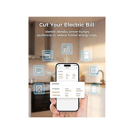 • TRACK ENERGY & CUT BILLS: Track power, voltage, current, and power factor within ±2% accuracy. Clear power usage and cost charts by minute/hour/day/month/year help you easily understand your energy use. Store up to 5 years of data and export hourly reports for deep analysis. Most users save 10–20% on energy costs by spotting energy hogs and getting accurate insights to cut their bills.
