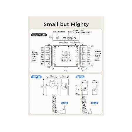 • 24/7 ENERGY MONITORING + SMART ALERTS: Real-time home energy monitoring from anywhere. Set custom alerts for unusual usage spikes and threshold breaches for total peace of mind. Catch issues early with no subscriptions, no cloud lock‑in, and no hidden fees — all built-in. Supports 2 main circuits (200A) + 16 branch circuits (60A), making it perfect for precise, circuit-level energy monitoring.