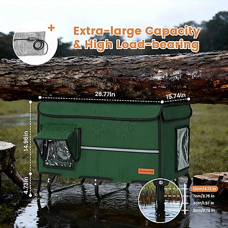 Model: 26'' XL Collapsible Heated Cat House - Metal Frame, 100% Insulated Waterproof Outdoor Stray Cat Shelter with Heating Pad & Escape Door, Adjustable Heat & Timer, Warm Shelter for Cats, Green