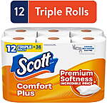 Scott ComfortPlus Toilet Paper, 12 Triple Rolls = 36 Regular $5.68 free ship Walmart+ or pick up (regional)