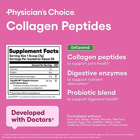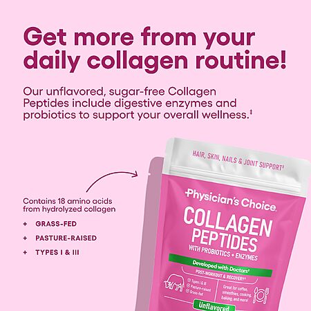 Physician's CHOICE Collagen Peptides - Hydrolyzed Protein Powder for Hair, Skin, Joints - Grass Fed, Non-GMO $11.99