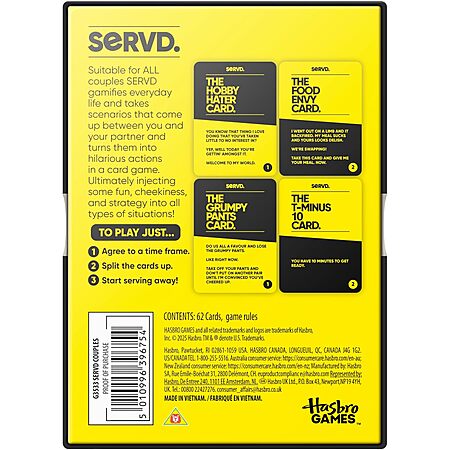 Hasbro Games SERVD Couples Game – Hilarious Real-Life Card Game for Partners – Funny Gifts for Anniversary, Date Nights, Valentine’s Day – 2 Players – Ages 17+ $7.99