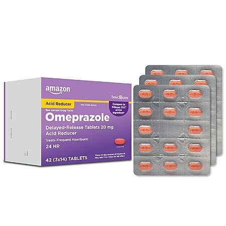 - TREATS FREQUENT HEARTBURN: Amazon Basic Care Omeprazole Delayed Release Tablets 20 mg treat frequent heartburn that occurs 2 or more times a week