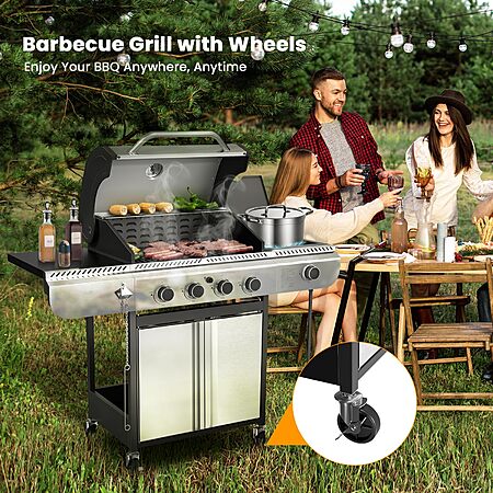 Electactic 4-Burner Gas Grill with Side Burner,Stainless Steel Propane Grill with Porcelain-Enameled Grills,Built-In Thermometer $269.96