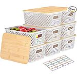 8-Pk Anysig Stackable Plastic Storage Bins w/ Bamboo Lids (3 Colors)