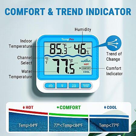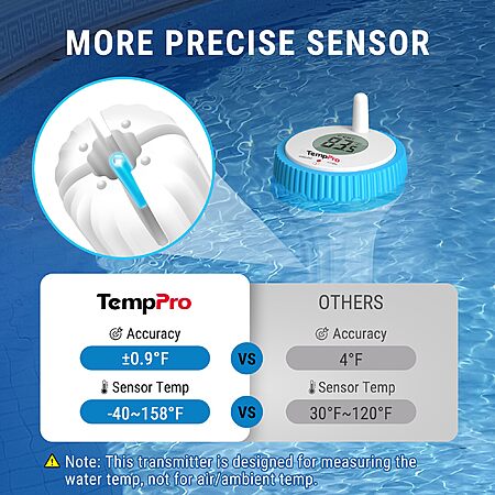 TempPro Waterproof Wireless Pool Thermometer Easy Read, Digital Pool Thermometer Floating for Swimming Pool, Hot Tub, Cold Plunge, Pond $27.99