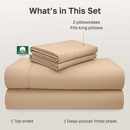 Lightning Deal: 4-Piece California Design Den 100% Cotton Bed Sheet Set (Golden Tan, King) $34.67 + Free Shipping w/ Prime or on $35+
