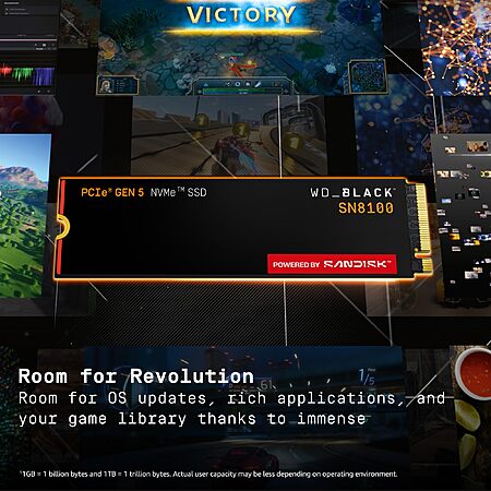 Used: Like New WD_Black SN8100 8TB NVMe SSD - PCIe 5.0x4, M.2 2280, Up to 14,900MB/s /11,000MB/s, WDS800T1X0M $1,611.10 $1611.1
