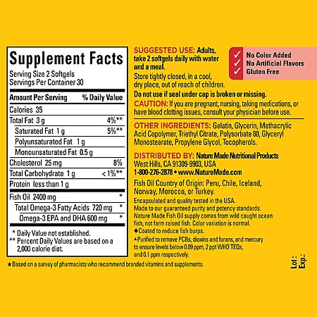 Model: Nature Made Burp Less Fish Oil Omega 3 Supplements, 1200 mg Softgels, EPA DHA Omega 3 Fish Oil Supplements for Healthy Heart Support, 60 Softgels, 30 Day Supply