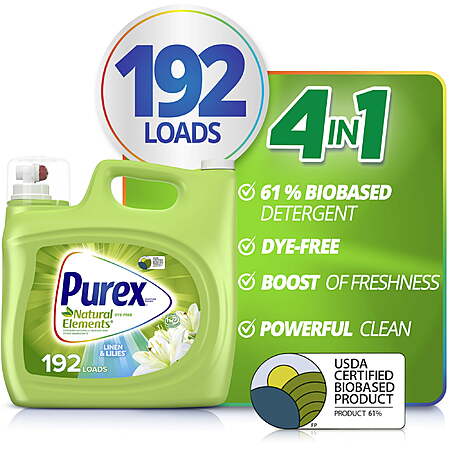 Purex Natural Elements Liquid Laundry Detergent, Fresh Lilies & Linen, 225 fl oz, 200 Loads