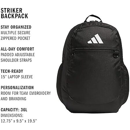 Model: adidas Striker Team Sports Backpack for Soccer and More, Workout Bag for Men and Women, Black/3.0 (36L), One Size