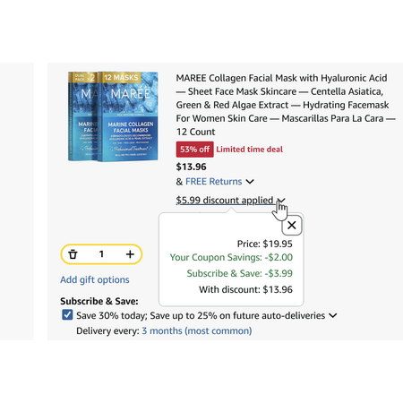 12-Count MAREE Collagen Sheet Face Mask w/ Hyaluronic Acid, Centella Asiatica, Green & Red Algae Extract $13.96 + Free Shipping w/ Prime