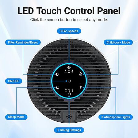 Air Purifiers for Bedroom Home, Cobectal Air Cleaner with H14 True HEPA 3-in-1 Filter for Room up to 1050 ft White $19.99