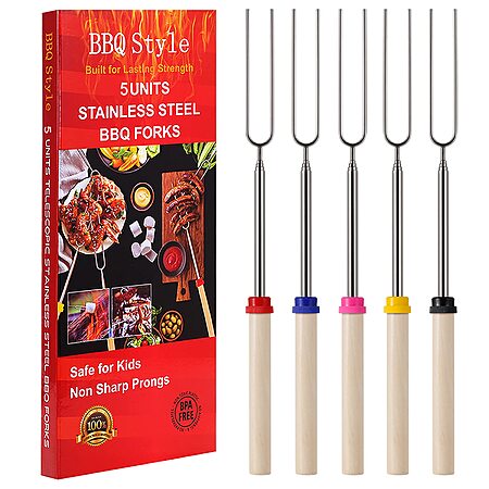Marshmallow Roasting Sticks, Telescoping Smores Sticks for Open Fire Pit, 32 Inch Long Marshmallow Toasting Barbecue Forks 5 Pack $6.6