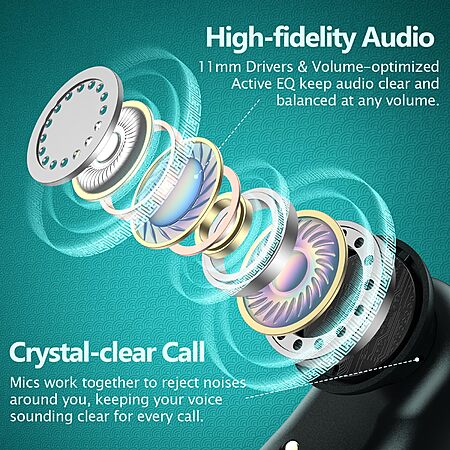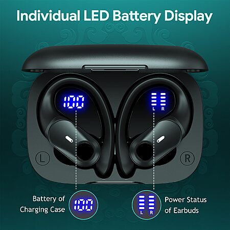 Active Noise Cancelling Wireless Earbuds Bluetooth Headphones 80H Playtime Ear Buds with Power Display Case Hi-Res Sound & Clear Calls Over Ear Hooks Earphones $44.99
