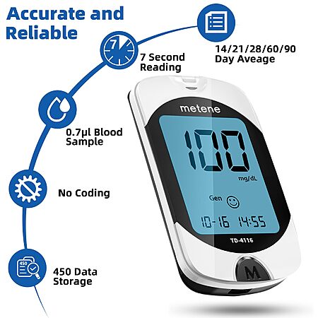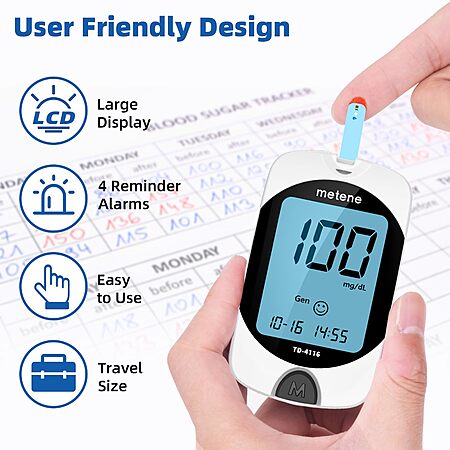 Metene TD-4116 Blood Glucose Monitor Kit, 100 Glucometer Strips, 100 Lancets, 1 Blood Sugar Monitor, Blood Sugar Test Kit with Control Solution $31.49