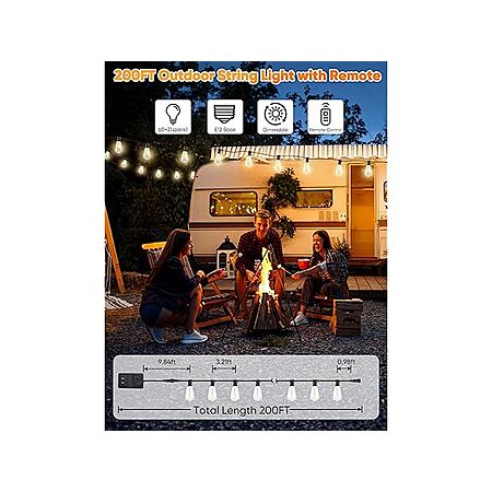 Brightever Outdoor String Lights with Remote, 200FT LED Patio Lights with 62 ST38 Shatterproof Vintage Bulbs, Dimmable String Lights for Outside, Waterproof IP65 Outdoor Lighting at Woot! for $34