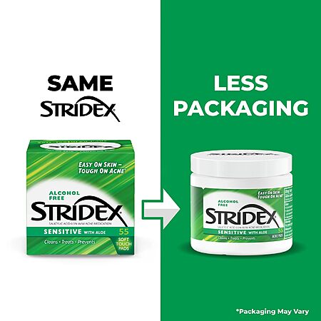 Stridex Sensitive with Aloe, Alcohol Free, 55 Soft Touch Pads, (Pack of 2) - $5.46