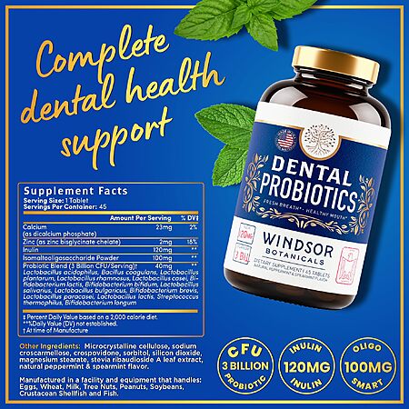 Windsor Botanicals Dental Probiotics (45 Tablets) – $15.29 w/ Subscribe & Save (Limited-Time Deal, Amazon)