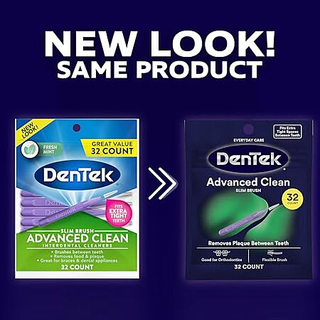 Model: DenTek Slim Brush Advanced Clean, Interdental Brushes for Cleaning Between Tight Teeth, Safe for Braces & Dental Work, 32 Count