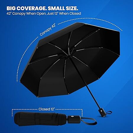 Model: Rain-Mate Windproof Compact Umbrellas for Rain - Strong Reinforced Fiberglass Rib Design & Auto Open & Close - Portable Folding Travel Umbrella - Lightweight & Packable for Women & Men, Easy Collapse