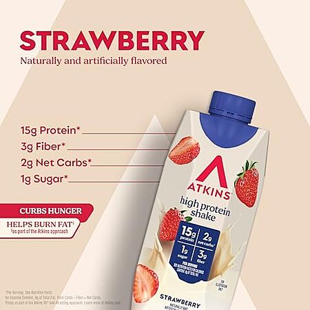 [SnS, AC] $13.42* | 12-Pack 11-Oz Atkins Deliciously Filling Protein Shake (Strawberry) at Amazon