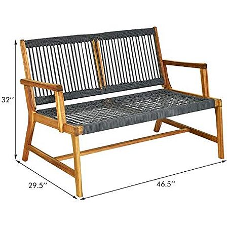 Tangkula via Amazon [amazon.com] has Tangkula Outdoor Acacia Wood Bench Loveseat w/ Teak Oil Finish & Rope Weave for $67.99.