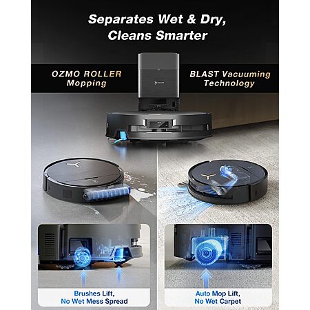 - Edge-to-Edge Cleaning: Extended OZMO ROLLER and side brush clean deeper into edges, baseboards, and tight gaps.