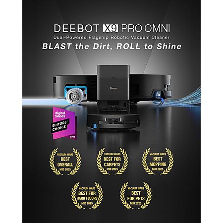 Amazon.com has ECOVACS DEEBOT X9 PRO Omni Robot Vacuum and Mop, 16,600Pa Suction, OZMO Roller Self-Washing Mop, ZeroTangle 3.0, Triple Lift System, AI Navigation, Hands-Free Station on sale for $679.