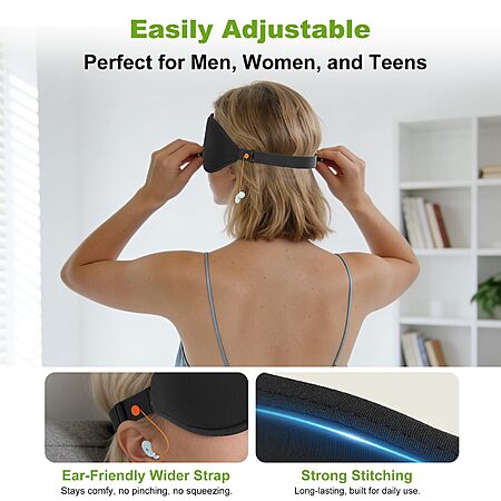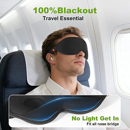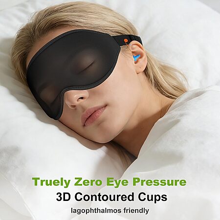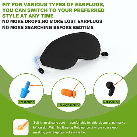 3D Contoured Sleep Mask with Earplug Retainer Cord