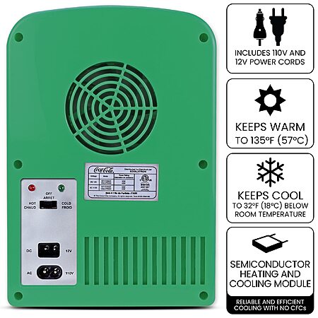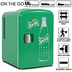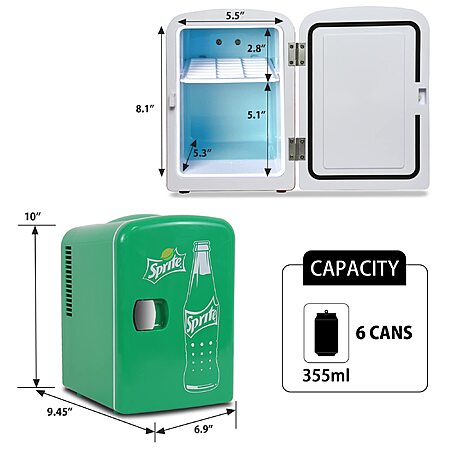 Model: Coca-Cola Sprite 4L Portable Cooler/Warmer, Compact Personal Travel Fridge for Snacks Lunch Drinks Cosmetics, Includes 12V and AC Cords, Cute Desk Accessory for Home Office Dorm Travel, Green