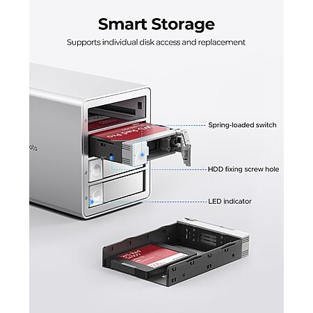 • [Support for Single Disk Replacement]: This USB-C external hard drive enclosure features 4 independent disk slots with an eject function for single-disk replacement. Easily swap or upgrade individual drives without interrupting the operation of other drives, keeping your workflow smooth.