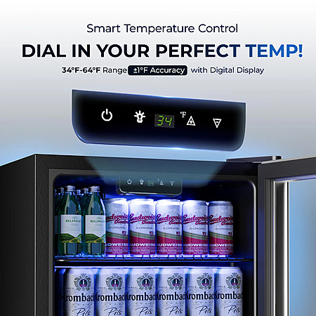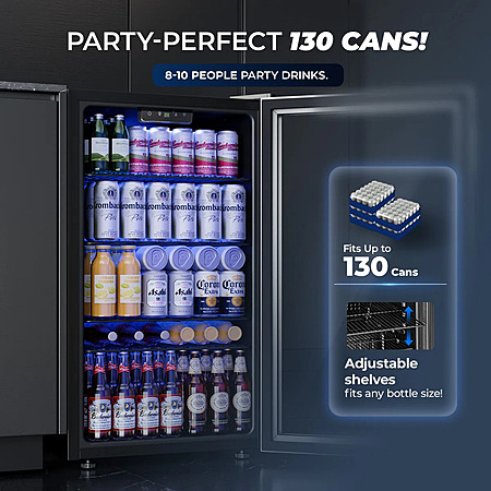 Simzlife 17.3'' W 130 Cans (12oz.) 3.3 Cubic Feet Freestanding Beverage Refrigerator with Glass Door $189.99