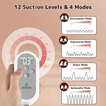 Saglve Wearable Breast Pump w/ 3 Modes & 9 Levels (Grey, 27mm Shield, 21/24mm Flange) $29.99 + Free Shipping w/ Prime or on $35+
