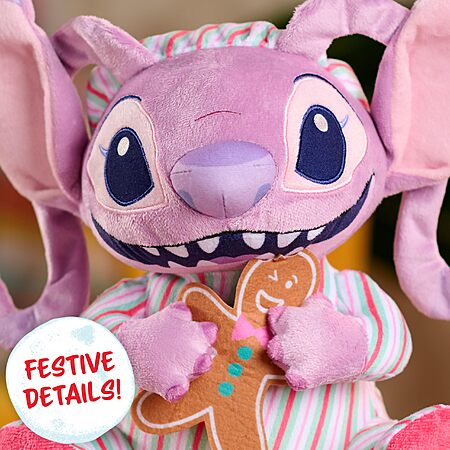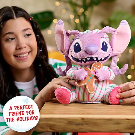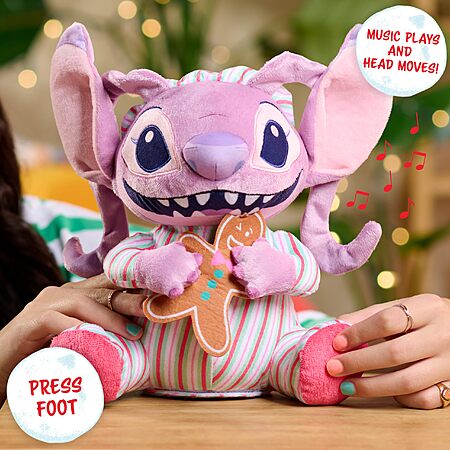 - Freshly Baked Holiday Fun: The holidays are the best time to move, groove, and munch a treat with Disney Angel! Every night before bedtime, the Disney Stitch Holiday Feature Plush Angel toy enjoys a delicious-looking gingerbread cookie.