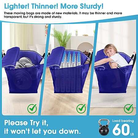 - These moving bags are made of new materials. It may be thinner and more transparent, but it's strong and sturdy.You can trust the flexible yet tear-resistant fabric of the moving bag, while its lightweight design won't add unnecessary bulk to your relocation or home organization