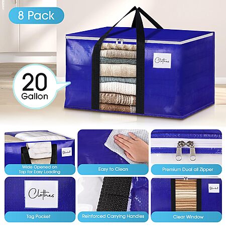 8-Pack 20-Gallon (76L) BlissTotes Moving / Storage Bags w/ Clear Window for