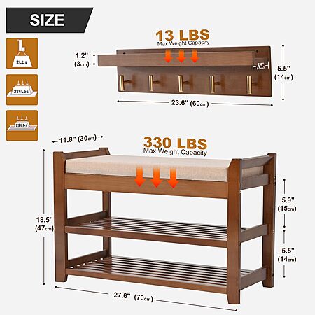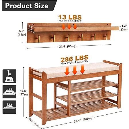 2-Piece Petkaboo Bamboo Wood Entryway Shoe Storage Bench and Coat Rack Set: 28" Brown $53.99, 39" Brown $75.60 + Free Shipping