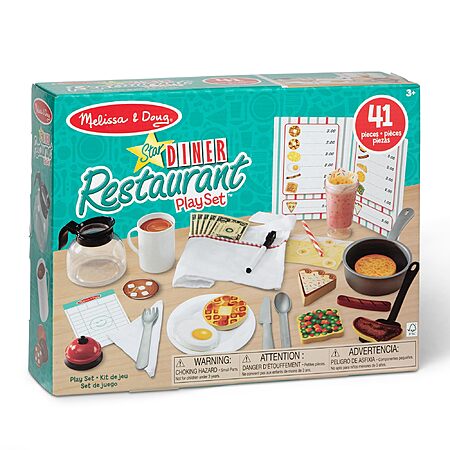 Melissa & Doug Star Diner Restaurant Play Set (41 pcs) Pretend Play Food, Restaurant Toy Set With Cookware, Utensils For Kids, Diner Playset for Kids And Toddlers, Ages 3+ $18.8