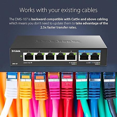 $35.88 | 7-Port D-Link 2.5GB Unmanaged Gaming Switch with 2 x 2.5G, 5 x 10/100/1000 Mbps (DMS-107) at Amazon