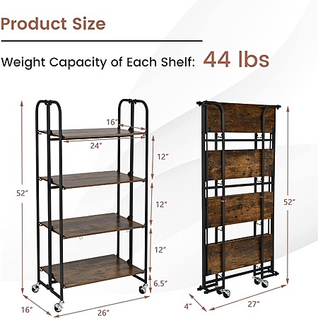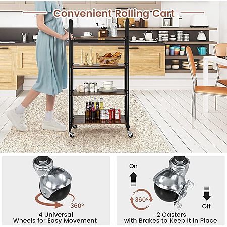 52'' Tall 4-Tier Foldable Rolling Cart w/Lockable Wheels, Metal Frame $39.99 + Free Shipping