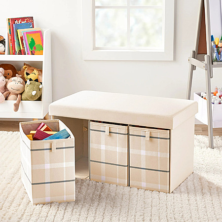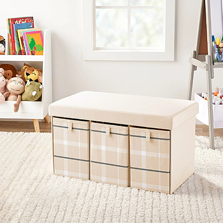 Walmart [walmart.com] has Kvell Kid's 28-Inch Storage Bench with 3 Drawers in Blush Plaid Pattern (Beige & White) for $12.34. Shipping is free w/ Walmart+ (free trial available [walmart.com]) or on orders $35+.