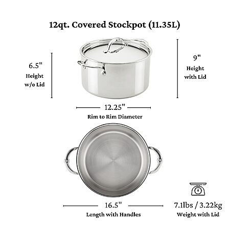 ProBond Luxe 12-Quart Professional Clad Stainless Steel Stock Pot with Lid $296