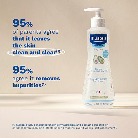 Mustela Baby Cleansing Water - No-Rinse Micellar Water - with Natural Avocado & Aloe Vera - for Baby's Face, Body & Diaper - 10.14 fl. oz. $14.62