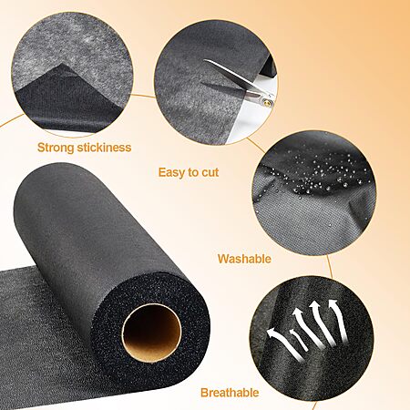 $9.99: PLANTIONAL Medium Weight Black Iron-On Non-Woven Fusible Interfacing, 11.6" x 30yd, Iron On Polyester, Single-Sided