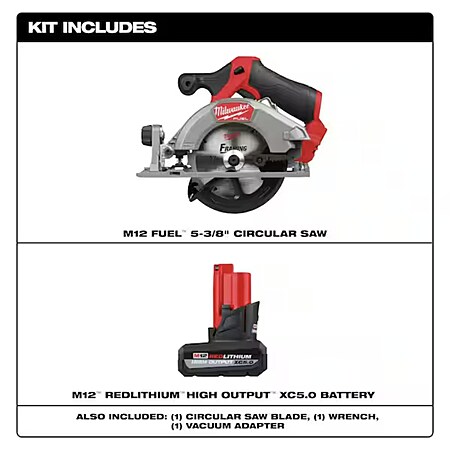 Milwaukee M12 FUEL 12V Brushless 5-3/8 in. Cordless Circular Saw w/ 5.0 Ah XC High Output Battery Lithium-Ion $179